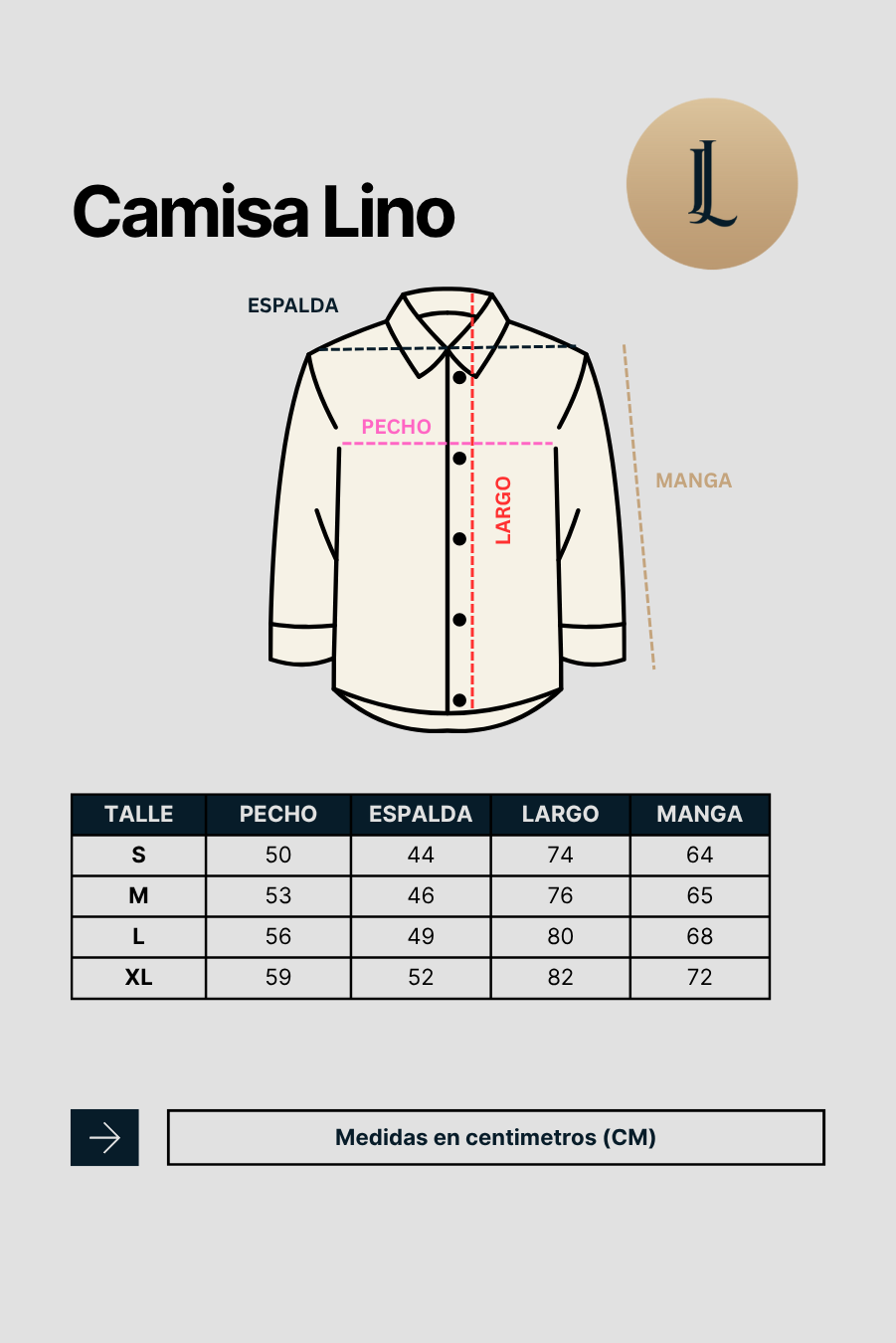 Confeccionada en lino suave y liviano, cuenta con grifa bordada JL en el lateral inferior y etiqueta bordada JLEGANCY en la espalda. Terminaciones prolijas y botones tono sobre tono que realzan su estética atemporal.